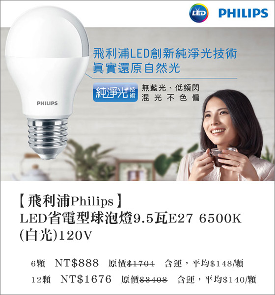 最近在網路上看到 飛利浦Philips-LED省電型球泡燈9.5瓦E27 6500K(白光)120V 覺得價格很實在 深得我心