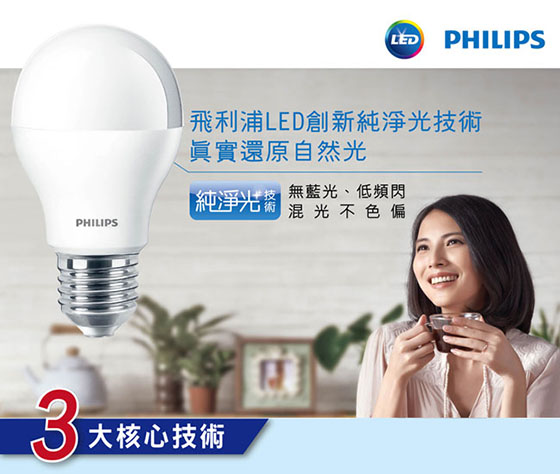 全球獨創純淨光技術,LED省電燈泡,通過無藍光認證,護眼又安心,低頻閃光,有效減輕眼部負擔,領先混光技術,長時間不色偏,保護靈魂之窗,就選【飛利浦Philips】。
