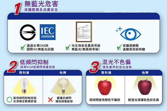 ◆ 國際IEC無藍光認證、台灣CNS認證